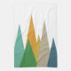 This fun mid century modern kitchen towel features an abstract mountain range in a combination of green, blue, orange, tan, gold, and turquoise blue. So fun!