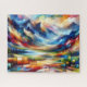 Trendy Contemporary AI Generated Colourful Abstract Mountains Landscape Oil Painting Modern Yellow Green Blue Red Purple Horizontal Puzzle.