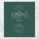 Wedding RSVP with mountains and evergreen illustration over emerald background.