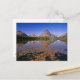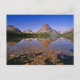 Mountains reflect into calm Two Medicine Lake in Postcard