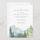 This elegant all in one wedding invitation features a watercolor forest and mountain scenery, minimalist details and calligraphy text. The back has additional details and a QR code making enclosure cards optional. It is classic yet modern and sure to set the scene for your mountain top destination wedding.