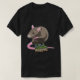 I give wanted to give this a 4 instead of a 5 because these Basic DARK T0shirts run unexpectedly SLIM or Narrow. Which is great if you do not have a potbelly, but I have a paunch. It isn't the shirt's fault that I've got a beer belly. The design and shirt itself is a quality cotton shirt. The color is more of a deep purple, but still a very pretty color. The Basic DARK T-shirts run a bit SLIMMER than the Basic Ts. The neck is a fraction narrower (or seems to be narrower) also. I'm a paunchy middle-aged woman and my neck is 12 inches (31cm) thick and the neckline fell about the same as in the photo of the man, and I had the desire to tug it a bit. So if you're a thick necked man or like loose shirts, be aware these are slimmer shirts. Once I get rid of my lockdown paunch it'll look great. The shirt washed well in cold water with no apparent bleeding. We don't have a dryer, so it hung dry. Did not shrink. Love the colors and the design. The design looks smaller on my shirt than it does on the model on-line. But still, it looks good on the shirt. The printing looks as it does on the model, just the size seems fractionally smaller. Washed garment in cold water, hung dry and design appeared unaffected.
