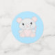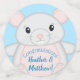 Cute mouse baby shower design, with a sweet fun cartoon that is great for a baby boy with a blue background!