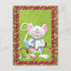 Mouse Christmas greeting cards and postcards featuring an adorable white mouse with a strand of holiday tree lights.