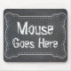 "Mouse Goes Here" Perfect mousepad for anyone strong with the sarcasm. Handwriting-style white text on a chalkboard background with a white decorative frame.
