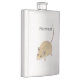 The product is a good size and came exactly as it was pictured. The lid is not attached to the flask, which could be dangerous on drunken nights... The print came out surprisingly well and looks very sharp. Would definitely recommend.