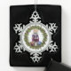 The Mouse king Nutcracker ballerina pewter snowflake Christmas ornament. This beautiful pewter snowflake ornament features the mouse king from the nutcracker in the centre of a holiday wreath with gifts. The back is pewter. A wonderful keepsake or gift to add to any ornament collection, and especially for those who collect nutcracker or mouse king ornaments. Please visit our store for more styles and gift products in this wonderful nutcracker theme!