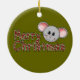 A little grey mouse and red and green candy cane striped text that reads "Merry Christmas" on a keepsake holiday ornament that you can change the shape of before ordering.