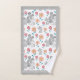 Cute grey mouse mother with two babies, flowers pattern and grey border Mother's Day bath towels. A lovely pattern of a cute grey mouse mother with two babies, red and coral flowers and grey borders adorn this bath towel set.