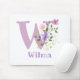 Design features Monogram & Name with Flowers either side in a water colour pastel style. Example name is Wilma. Could be for anyone with a name beginning with W.