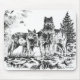 A pen and ink illustration of three wolfs standing on a rock out cropping. Great custom mouse pad for a wildlife lover!