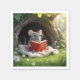 A grey mouse wearing glasses is reading a red book titled "Mouse Tales" while sitting on a fuzzy blanket