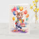 Cute character at celebration party. Blank for your own greeting and personal message inside.