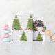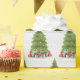 A cute mouse holding a Christmas ornament by a holiday tree with gifts.
