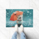 Mouse with Umbrella in Rain: Cute Rainy Day Scene Doormat