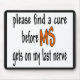 Raise Multiple Sclerosis Awareness with a design that has a double meaning. A perfect way to show your support since everyone has a last nerve but people with MS hope to keep ALL their nerves active! These make ideal gifts for your friends and family as well as great gear for your MS Walks.