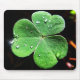 Mousepad grünes Kleeblatt mit Wassertropfen