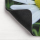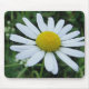 Eine hübsche, grosse, weisse Margeritenblüte mit schön gezeichnetem gelben Blütenzentrum vor weiss gepunktetem grünem Wiesenhintergrund ist auf diesem Mousepad.