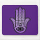 Mousepad with purple Hamsa Hand, Hand of Fatima, design created by Alan Skyrme.