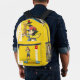 Lightweight and durable, our custom all-over-print Backpack is just what you need. The spacious interior is ideal for travel, school, gym, or any mobile storage need. Bring your stuff with you in style! Features Adjustable padded shoulder straps, two chambers on the inside for laptop storage, mesh side pockets and an identification label.