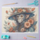 Beautiful and mystical fun chimp monkey with flowery hat. Perfect for all your decoupage projects and furniture transformation decoupage transferts.