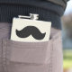 An old fashioned looking flask with a big black moustache, your best man's name, his role, and the wedding date.