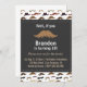 Well, if you must ask, it is a moustache theme birthday! A funny substitute of the words "must ask" with the moustache. A background pattern of assorted and interesting moustache styles. A modern and hip design to usher the boy into adulthood. Personalise easily with your party details.