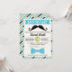 This little man baby shower invitation features a black moustache and blue polka dot bow tie on an off white background. The design also includes a blue banner. The border features a diagonal striped pattern in black, blue and green on a beige background. I wanted to create a new series of little gentleman baby shower invitations because it's a much loved and popular theme. I wanted visitors to the site to have more choices to choose from. This boy's little gentleman baby shower invitation is ready to be personalised and is ideal for a little man theme baby shower.