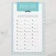 The Baby ABCs game is a fun activity for any Baby Shower, as guests try to fill in the cards with baby items that start with each letter of the alphabet. In a grey and turquoise colour scheme, this card features a moustache illustration. The perfect addition to a 'Little Man' themed Baby Shower!