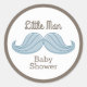 Cute baby shower design with old fashioned blue moustache. Text says LITTLE MAN. Customisable text. PinkInkArt original!