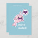 Super cute baby albino narwhal with moustache and love heart. Personalise the back with your party information.