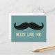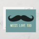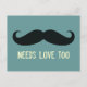 Our Moustache Needs Love Too Funny Postcards are a cool all-occasion gift idea! Design features the trendy moustache motif against a modern blue background with text in white. Perfect for quick, hand-written greetings, moustache party invitations, etc. Volume discounts available!