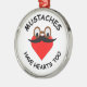Moustaches have feelings too. Cute cartoon moustache with red heart and glasses image.
