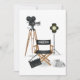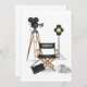Fancy yourself as a movie director. Well this design is perfect for you. It is of a movie director set. The set has the movie director chair, camera, lights, scene board and other props. All ready to start filming the movie. This movie director set design looks great on these invitations