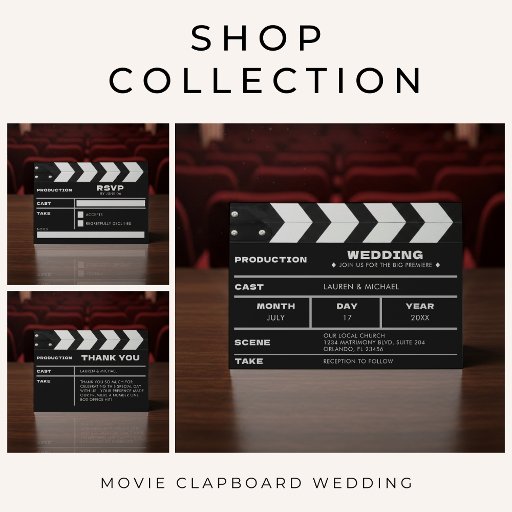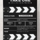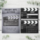 Premiere your big day in cinematic style with this creative movie clapboard wedding invitation. The perfect blend of modern and retro style for couples who love classic Hollywood film and movie aesthetics. Personalize it with your event details and let your family and friends know an all star cast is about to cross a major milestone.