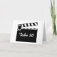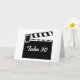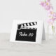 This card design features a black and white slate clapperboard that you'd find used on a movie or TV set, used to indicate the start of a 'take'; the filming of a scene and used to allow sound and video to be synchronized at the editing stage.