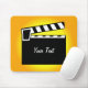 This design features a black and white slate clapperboard that you'd find used on a movie or TV set, used to indicate the start of a 'take'; the filming of a scene and used to allow sound and video to be synchronised at the editing stage.