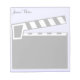 This design features a black and white slate clapperboard that you'd find used on a movie or TV set, used to indicate the start of a 'take'; the filming of a scene and used to allow sound and video to be synchronised at the editing stage.