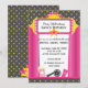 This party invitation highlights the guest of honour, putting their name in lights! In Pink and Grey.