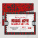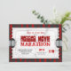 Having a Horror Movie Marathon? Invite everyone to your movie night with this fun invitation designed like a movie admission ticket. A white ticket, with text in red and black is adorned with subtle cracks and splatter on a red and black striped background. Great for a Halloween party or anytime when horror movies are the theme.