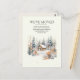 "We've moved" change of address / moving announcement postcard with the painting of a log cabin in the snow at the edge of a forest.
