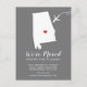 Modern moving announcement featuring the state of Alabama , with a red heart & aeroplane set on a grey background. The background colour can be changed easily by clicking personalise and then click to customise further to view our colour picker. From there you can also move the aeroplane & heart! Contact our shop if you require help or need another state.