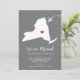Modern moving announcement featuring the state of NEW YORK with a red heart & aeroplane set on a grey background. The background colour can be changed easily by clicking personalise and then click to customise further to view our colour picker. From there you can also move the aeroplane & heart! Contact our shop if you require help or need another state.