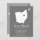 Modern moving announcement featuring the state of OHIO, with a red heart & aeroplane set on a grey background. The background colour can be changed easily by clicking personalise and then click to customise further to view our colour picker. From there you can also move the aeroplane & heart! Contact our shop if you require help or need another state.