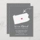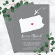 Modern moving announcement featuring the state of Pennsylvania with a red heart & aeroplane set on a grey background. The background colour can be changed easily by clicking personalise and then click to customise further to view our colour picker. From there you can also move the aeroplane & heart! Contact our shop if you require help or need another state.