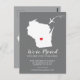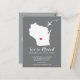 Modern moving announcement featuring the state of WISCONSIN, with a red heart & aeroplane set on a grey background. The background colour can be changed easily by clicking personalise and then click to customise further to view our colour picker. From there you can also move the aeroplane & heart! Contact our shop if you require help or need another state.