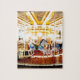 The blurred motion of a carousel in motion features a horse for children to ride on. This jigsaw puzzle is fully customisable.