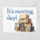 The bold headline "It's Moving Day!" is prominently displayed in an elegant yet playful font, perfectly capturing the joy and anticipation of a fresh start. The back offers ample space for a personalised message, ideal for real estate agents helping clients celebrate their next chapter or individuals marking this milestone in style, this postcard is a thoughtful and artistic way to spread the news.