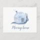 Moving home advance notice of moving to new house. Let friends and family know of your upcoming house move with these cute whimsy snail moving home art moving house grey blue postcards. Personalise with your own moving date, name and new address details. Cute snail with a home to move watercolor art by Sarah Trett for www.mylittleeden.com on zazzle.