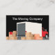 Moving truck modern two side business cards designed with a moving truck and moving boxes in the background.